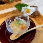 次の一品は、足赤海老、ぎんなん、むかご、という素材の質問をしたので覚えているけど、どんなお料理だったのか写真撮り忘れて思い出せない哀しいプレシニアpiyon。
