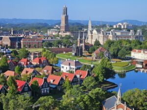 ハウステンボス駅から近くてカナルクルーザーでハウステンボスにアクセスできて温泉大浴場があるホテル「ホテルオークラJRハウステンボス」。客室から見渡すパークとオランダ様式の別荘の眺めも最高。