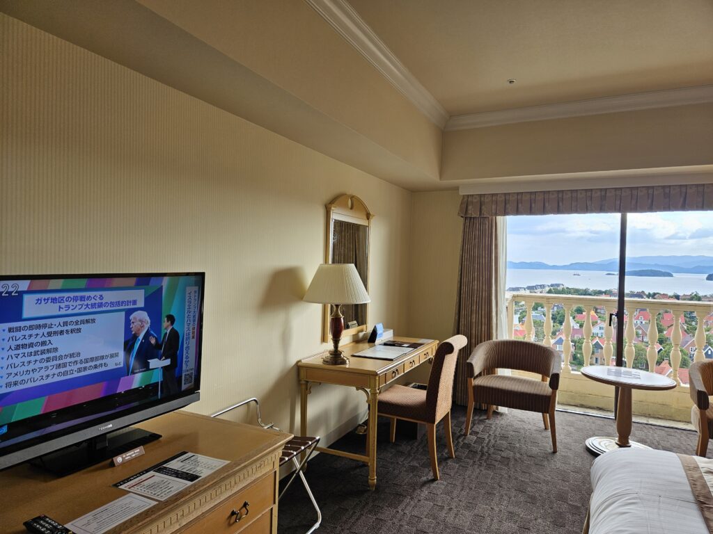 眺望好きpiyonにとってこのホテルの魅力は、静かな大村湾に浮かぶ島々とオランダ様式の家々が建ち並ぶワッセナーの眺めの素晴らしさ。