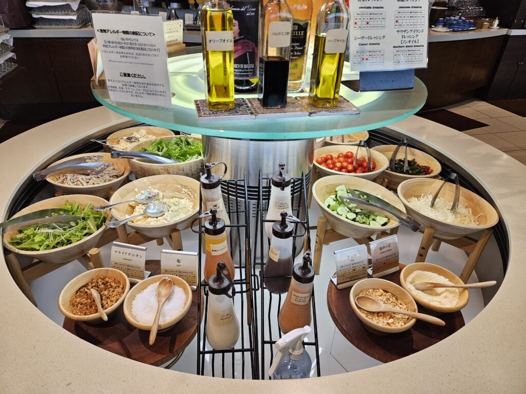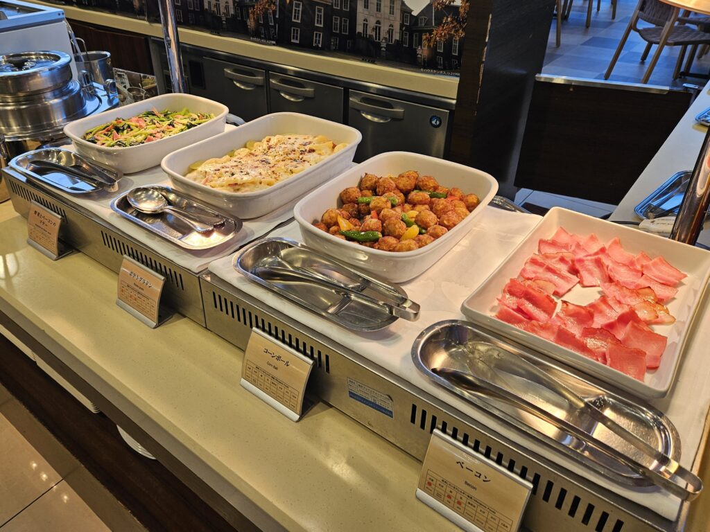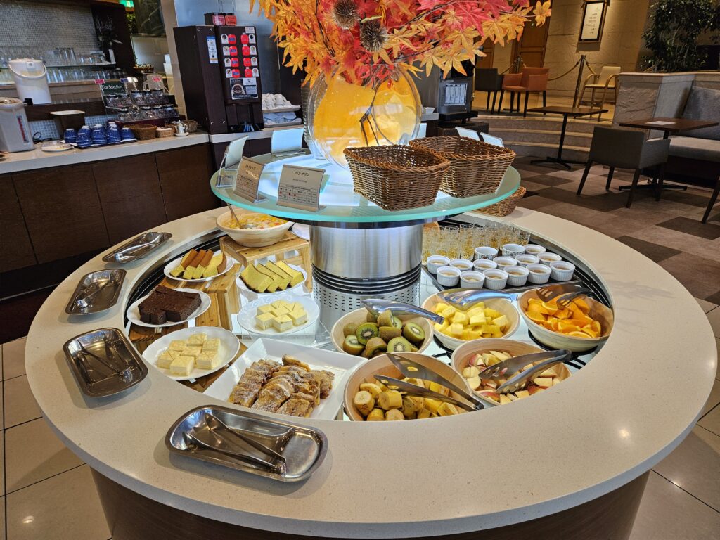この他にも挽き立て淹れたてのコーヒーマシンや、種類豊富なティーバッグなど充実してました。