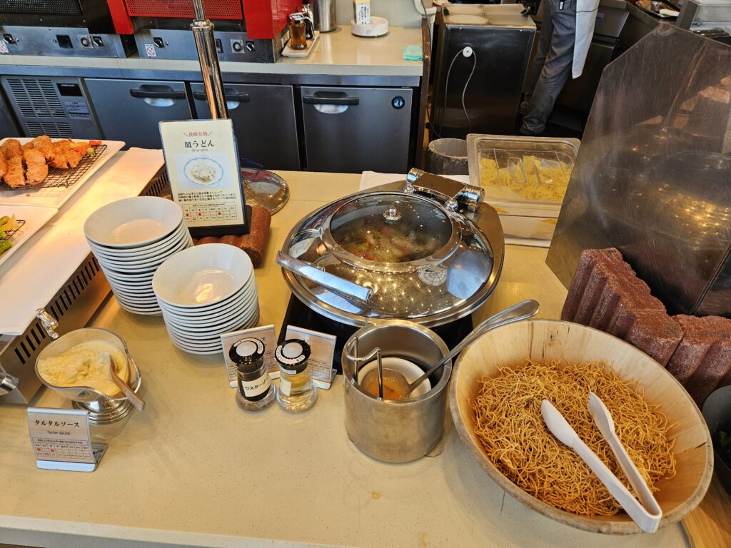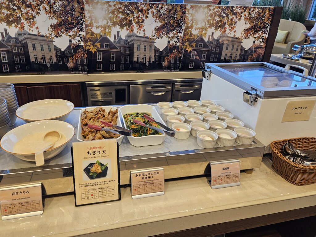 たまご料理のライブキッチンでは、オムレツ、スクランブルエッグ、目玉焼き、「とろろ芋とマダイの出汁巻き おすすめソースはみぞれあん」というラインナップ。