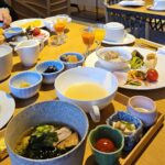 ご当地メニュー「湯葉あんかけ丼」は美味しいし、どれも普通に美味しいのに、味噌汁のお鍋が高い台の上にのっているため高齢の方は届くのか心配になったり、いろいろ改善の余地を残すラウンジの朝食でした。